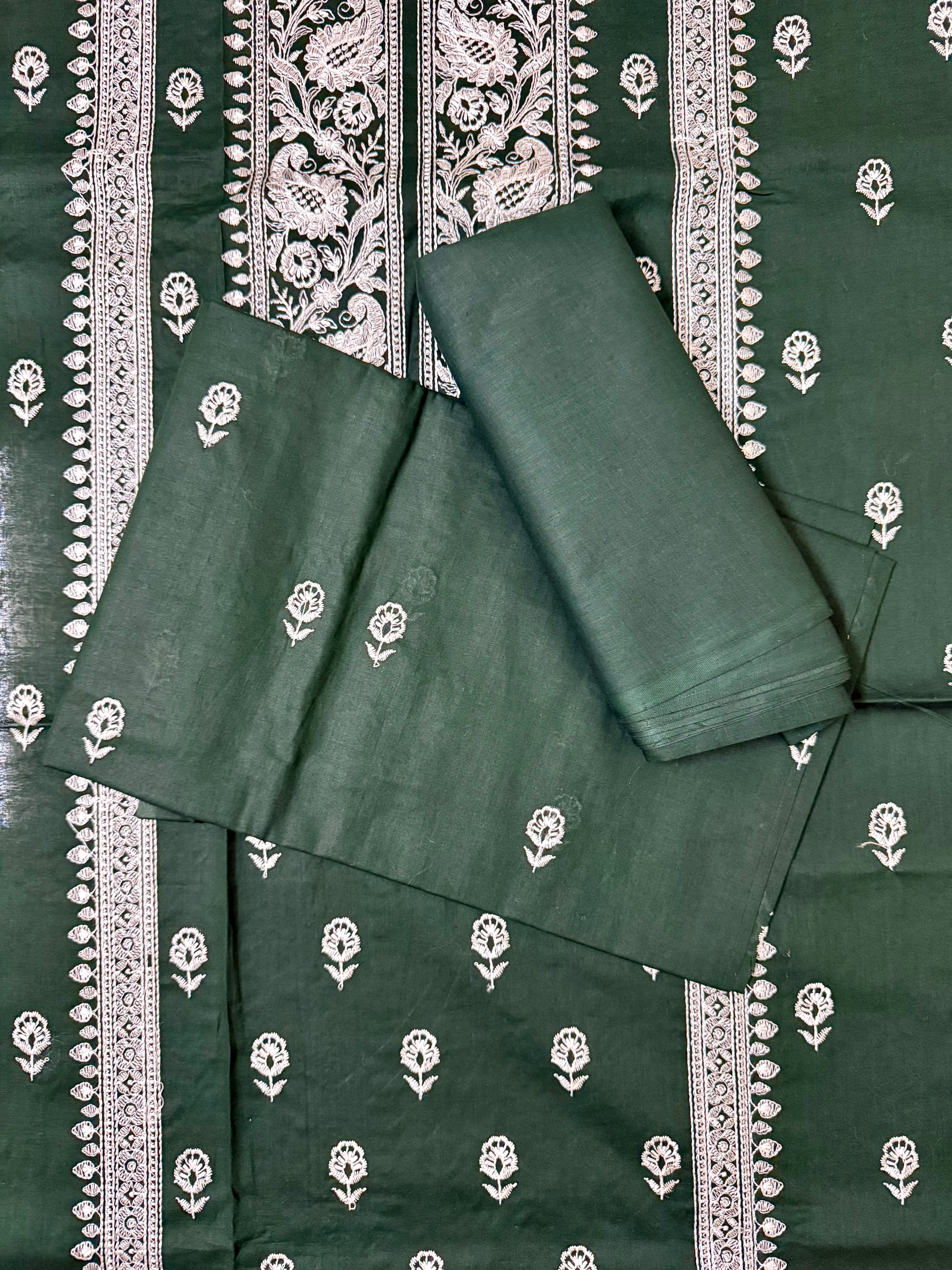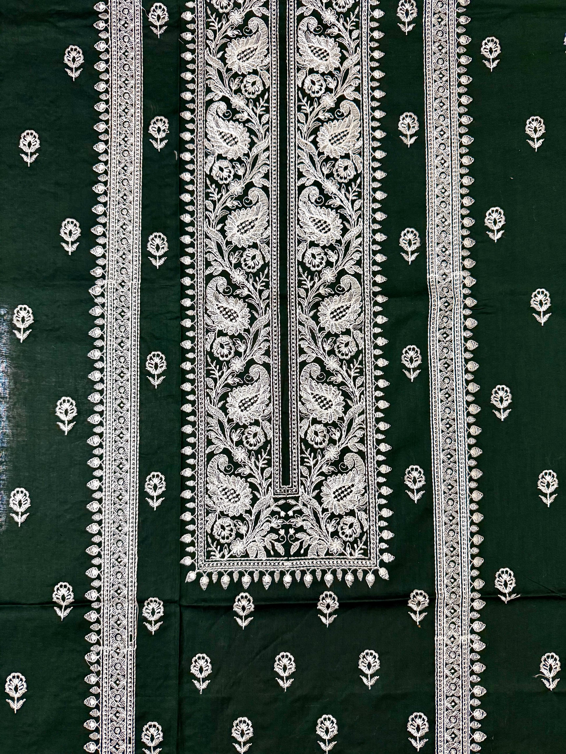 Classic Dark Green Lawn with White Embroidery 2-Piece Suit