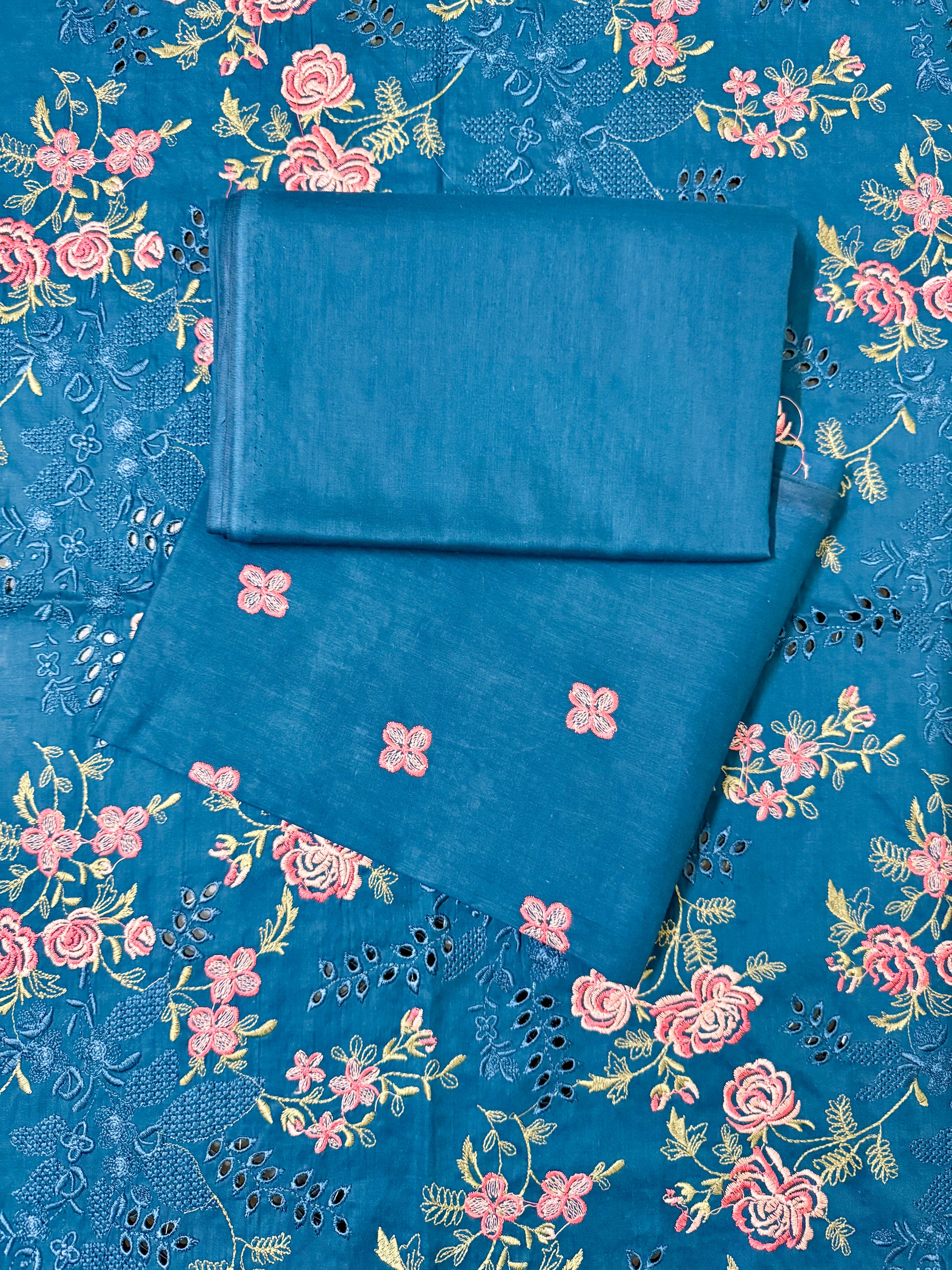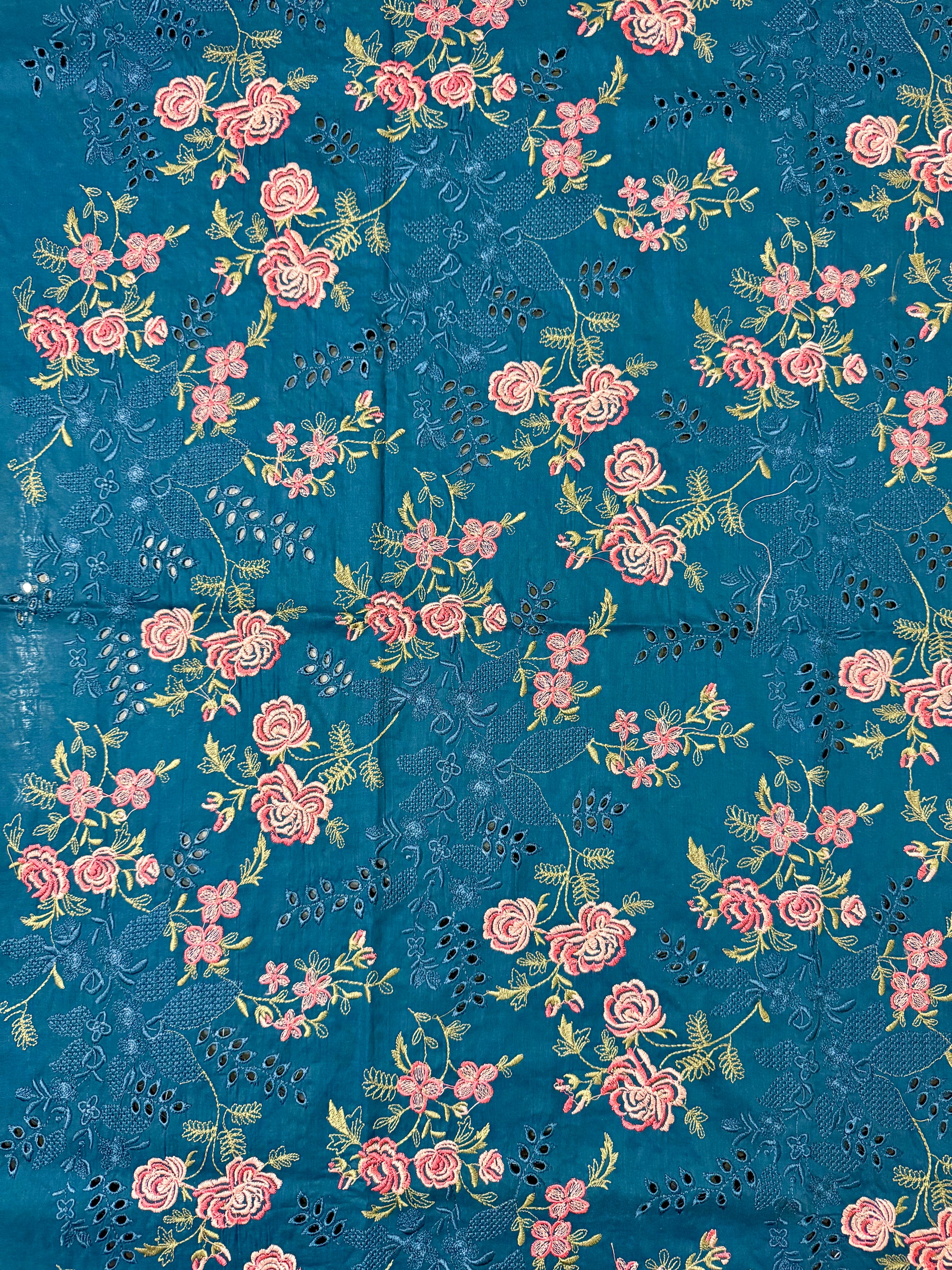 - Color: Deep Blue with Pink & Yellow Floral Embroidery