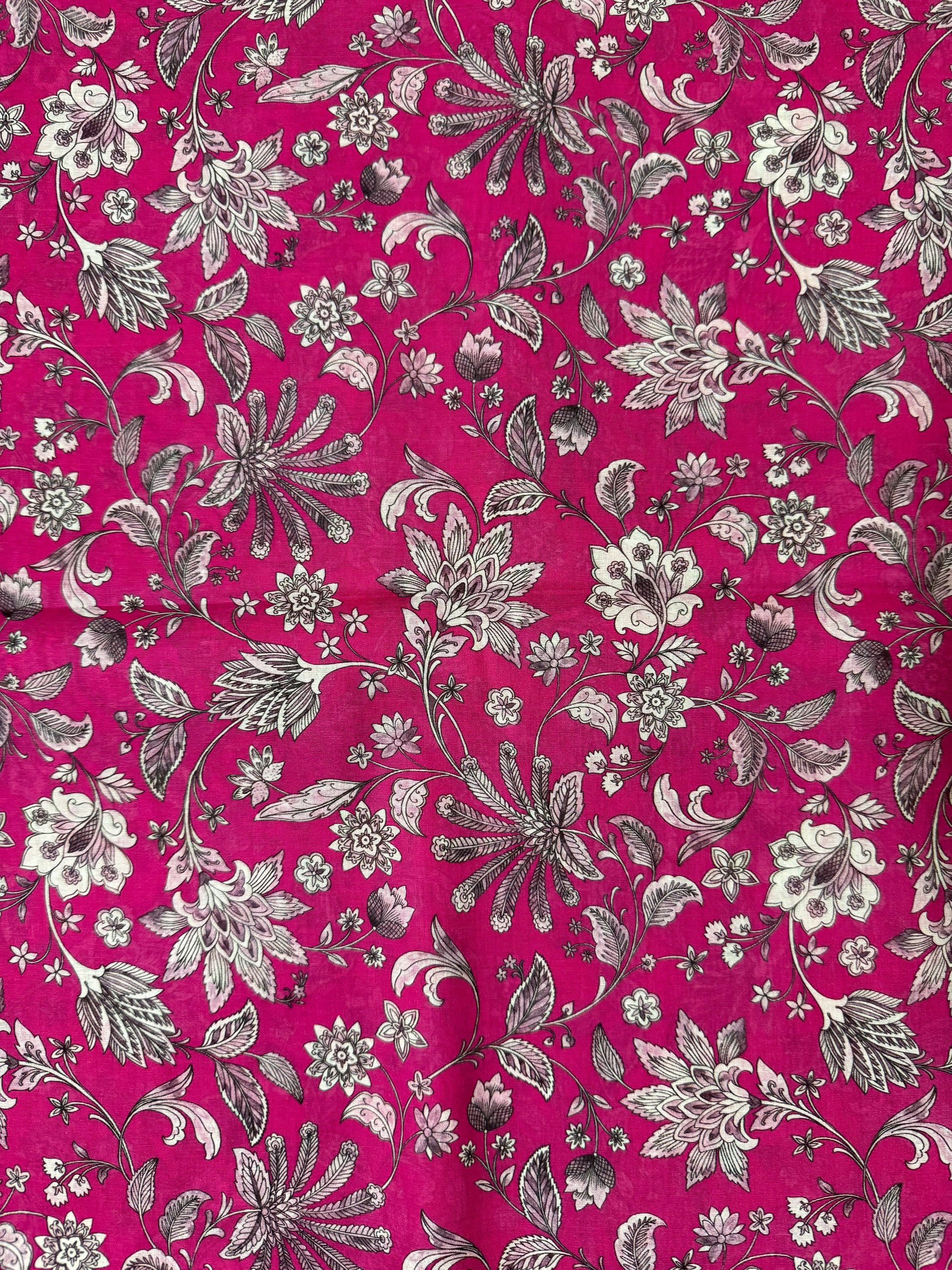 Infuse your wardrobe with bold beauty and floral flair. This 3-piece Breeze Lawn suit features a captivating magenta base adorned with intricate grey and white floral motifs — perfect for those who love to stand out in elegance. Lightweight and breathable, it’s ideal for both casual outings and festive days.